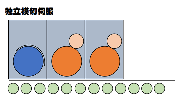 獨立模切主要應用在,瓦楞紙水墨印刷機的模切機組上,目的是將模切部分的動力單獨使用伺服控制,實現隔離模切帶來的抖動,從而減速因為模切抖動對印刷產生的影響。